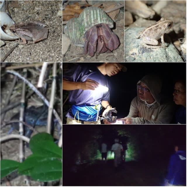 夜はジャングルナイトツアーに参加し、ヤシガニ、カエル、ヤドカリ、オオコオモリなどなど、陸の生物にもたくさん会うことができました‼