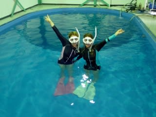 今日は、オープンウォーターダイバーコースの学科講習とプールでスキンダイビングがありました。