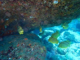 水面でユラユラ泳ぐナンヨウツバメウオがいたり、