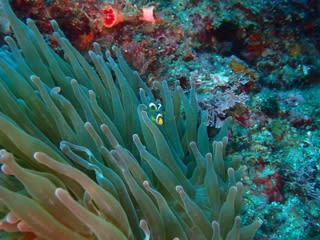 近くのイソギンチャク畑では、クマノミや