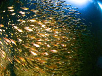 なんとーーーーーーーーー!!!洞窟内ではスゴ〜〜〜い数のイサキの群れとキンメモドキの群れだらけでギョギョギョ〜〜〜〜〜〜です!!!