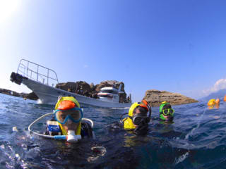 牛着岩をバックに。ヒヨコとカッパ♪今回も水中写真を沢山提供いただきありがとうございました。