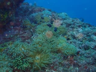 でも一番盛り上がったのは、イソギンチャク畑のクマノミとミツボシクロスズメダイでした。