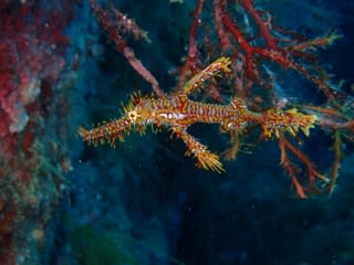 ケーソンには、海藻にすぐ隠れてしまう、小さなベニカエルアンコウも見られました