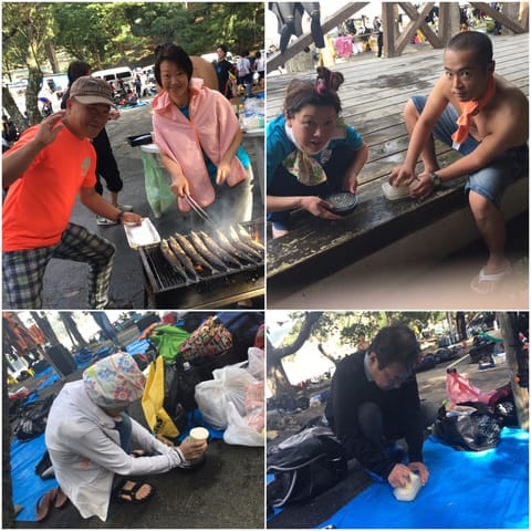 ダイビング終了後は、お楽しみの「焼きさんま」