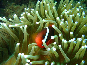 またエントリー口近くには、伊豆では珍しいハマクマノミの成魚がいたり、