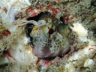 イソギンポのたてがみが、流れで横向きですが、大小いろんなサイズが顔を出し出迎えてくれました。