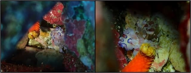 最初はアカヒトデと離れていたのですが、色々な角度から見ようとしているうちに、近づいてヒトデをキープしていました!