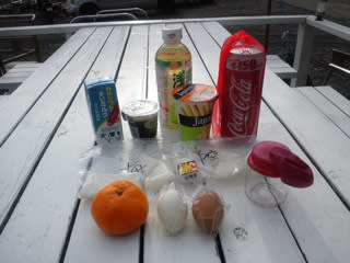 生卵、牛乳パック、みかん、プッチンコーヒーゼリー、ヒミツの大根、チョコレート・・・などなど。