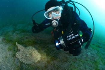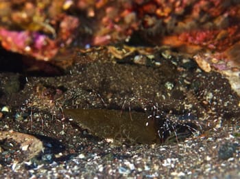 なんとかアンコウに会いたい!!!ならば水中スクーターで探してみようと思い、スクーターで一日アンコウ捜索ダイビングでした。なんと。終了後の器材の片付け中にアンコウ出たよ~。とのことで急いでエントリーです。念願のちびアンコウに会えました!はごろもマリンサービスの井上さん、グッドタイミングでお邪魔させていただきありがとうございました!ド迫力に撮れているアンコウ写真も頂いちゃいました&使用させていただきますさらに只今ツノザヤ3種も見られます!