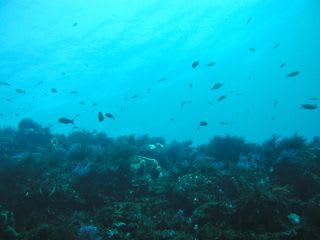 根の上や周りには、キンギョハナダイが群れていて、とても奇麗でした。