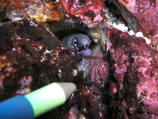 極小?ウツボが亀裂から顔を覗かせている姿も。