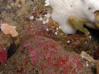 亀裂を覗くと、ベンケイハゼを見つめているチビウツボも見られました。
