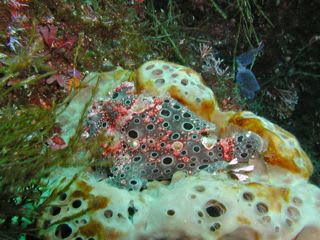 ピンク色のキレイなトゲトサカには、同じ色のイソコンペイトウガニが隠れていたり、