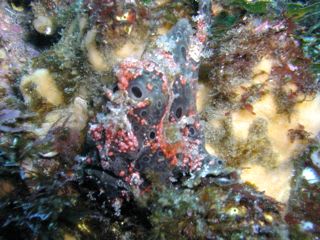 1本目では、グレーのイロカエルアンコウが黄色のカイメンの上にいました。