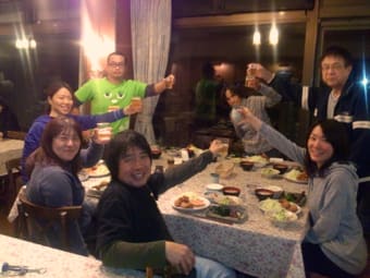 宿泊はロッジビスタさん。宴会の後は2名で卓球大会。笑