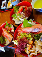 そして新鮮な海鮮が楽しめるのも初島の魅力!どんぶり合戦はまだだったので、好きな海鮮が自分でチョイスできるセレクト海鮮丼に決まり!ウマウマ食べ比べ合戦をしてきました!