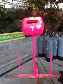 バレンタインデーが近いので、海中ポストがピンクのバレンタインヴァージョンになって、