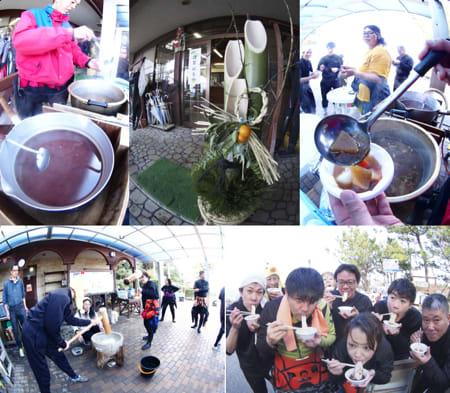 ダイビングの合間はお餅つき〜〜!!!!ついたお餅をお汁粉やお雑煮にしてもらえちゃいます!!!ごちそうさまでした