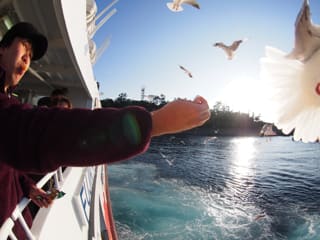その1、船にずっと並走するカモメの群れと遊ぶ。