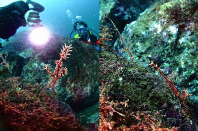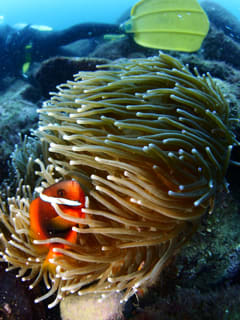只今黄金崎ビーチではエントリーしてすぐのところでハマクマノミ!!!が見られています。凄いです!南国です