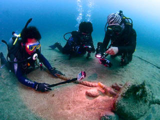 天気は晴れ。海はベタ凪の快適な一日でした!アドバンスコース海洋実習チームの3本につられてあまりに楽しい水中のため、ファンチームも3ダイブしました。