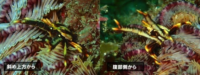 普段はウミシダの裏に隠れているコマチコシオリエビは、見てみて~と言わんばかりに堂々とウミシダが閉じた上で威嚇ポーズをとっていましたV=[° °]=V
