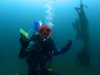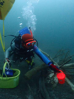 見つけたお宝は、もちろんロープワークを駆使してリフトバッグにて回収していただきました。