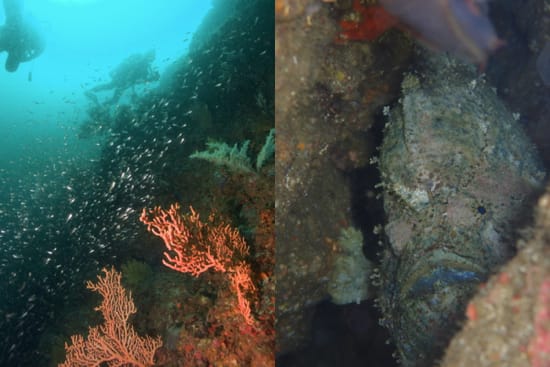 当日限定ポイントの五島根では、かなりギュウギュウの隙間に隠れていたバレーボールサイズのソウシカエルアンコウ!白根ではタテジマキンチャクダイの幼魚や小泉さん発見のピカチュー、キンギョハナダイ乱舞、イサキリバーなどなど。