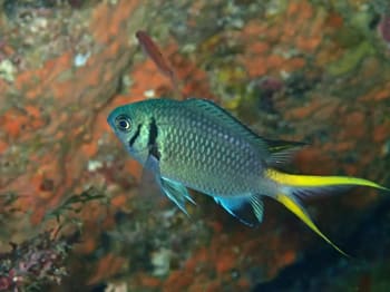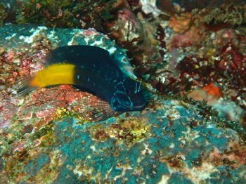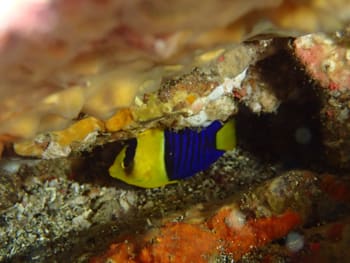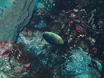 かなりしっかりしたサイズのモンスズメダイ。1.5の根にて