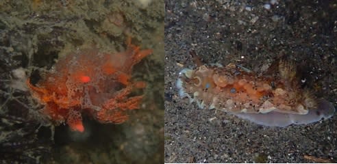 今回は大きめのウミウシ。ベッコウヒカリウミウシと砂地を徘徊中のミヤコウミウシ。