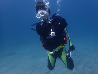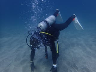 まずは、ドライスーツの給排気を使って着底や離底の練習です。