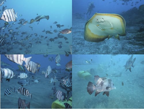 ブイの下は、ものすごい数のクロホシイシモチやネンブツダイが群れていて、