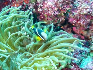 岩場のイソギンチャクには、ミツボシクロスズメダイや、クマノミが見られました。