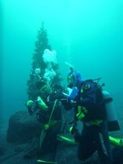 コンパス、水深計、カメラ、水中ノートなどを使って、