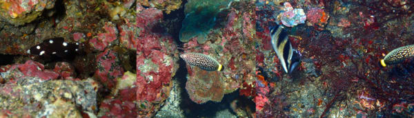 スミツキベラ、クロフチススキベラ、カガミチョウチョウオ、中層ではウメイロモドキの幼魚も見られました。