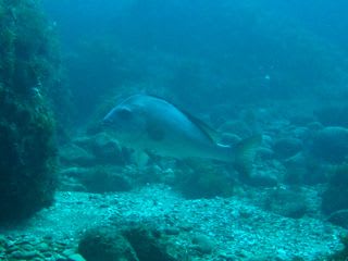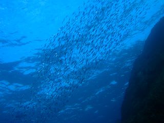 奥には、テングダイ、マツカサウオ、ムスジコショウダイ幼魚がいたり、