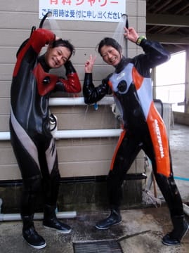 PPB SPコースで数々のトリックをメイクした強者ダイバー2名こちらのコースでは中性浮力を完全マスターするために、ウエイト調整のポイント、呼吸のコントロールやドライやBCの吸排気操作などなど行いフィンワークもアレンジしていきます