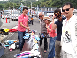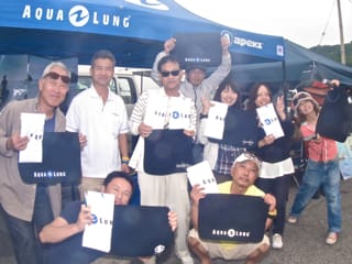 器材モニター会ではかわったフィンが使えたり、最新の重器材を使ってみたりみなさん大満足でした帰りに日本アクアラングさんから、にちあくタオル、にちあくペン、にちあくカメラメンテシートをいただいて大盛り上がりで記念撮影しちゃいました♪