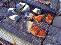 今回の献立はサザエの壷焼き、伊勢えび汁、ウツボの唐揚げ、焼きサバ、アジまご茶漬け、マグロ漬け丼、なめろう丼、イカのクチ焼き、アジの開き、焼きそばなどなどが、食べ放題のお腹いっぱいです!!