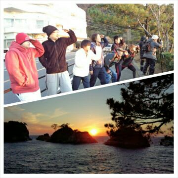 帰りには堂ヶ島にて、ナイスタイミングの夕日を眺めて、記念撮影