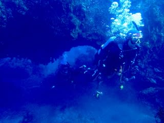 そのアーチには、イソギンチャクにクマノミやミツボシクロススメダイがいたり、