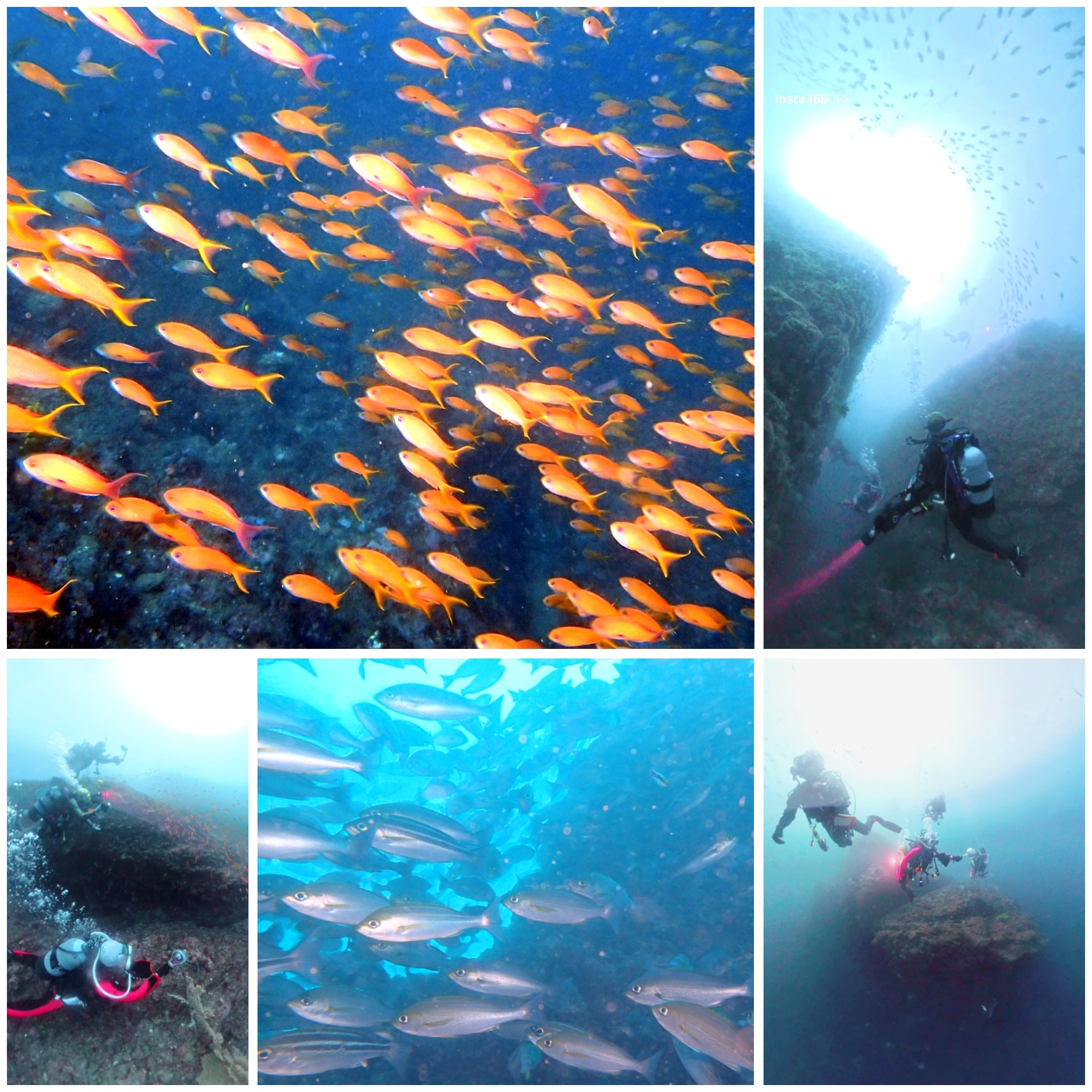 ムロアジ、イサキ、タカベの群れが根の周りを埋めつくす!!キンギョハナダイの行列やメジナの塊が!まるで空を舞うように水中を覆いつくしておりました🐟