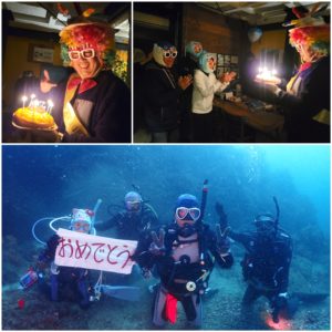 今回はお誕生日のゲスト様がいらっしゃり、水中とお店に戻ってからの両方でお祝いをさせていただきました🎉