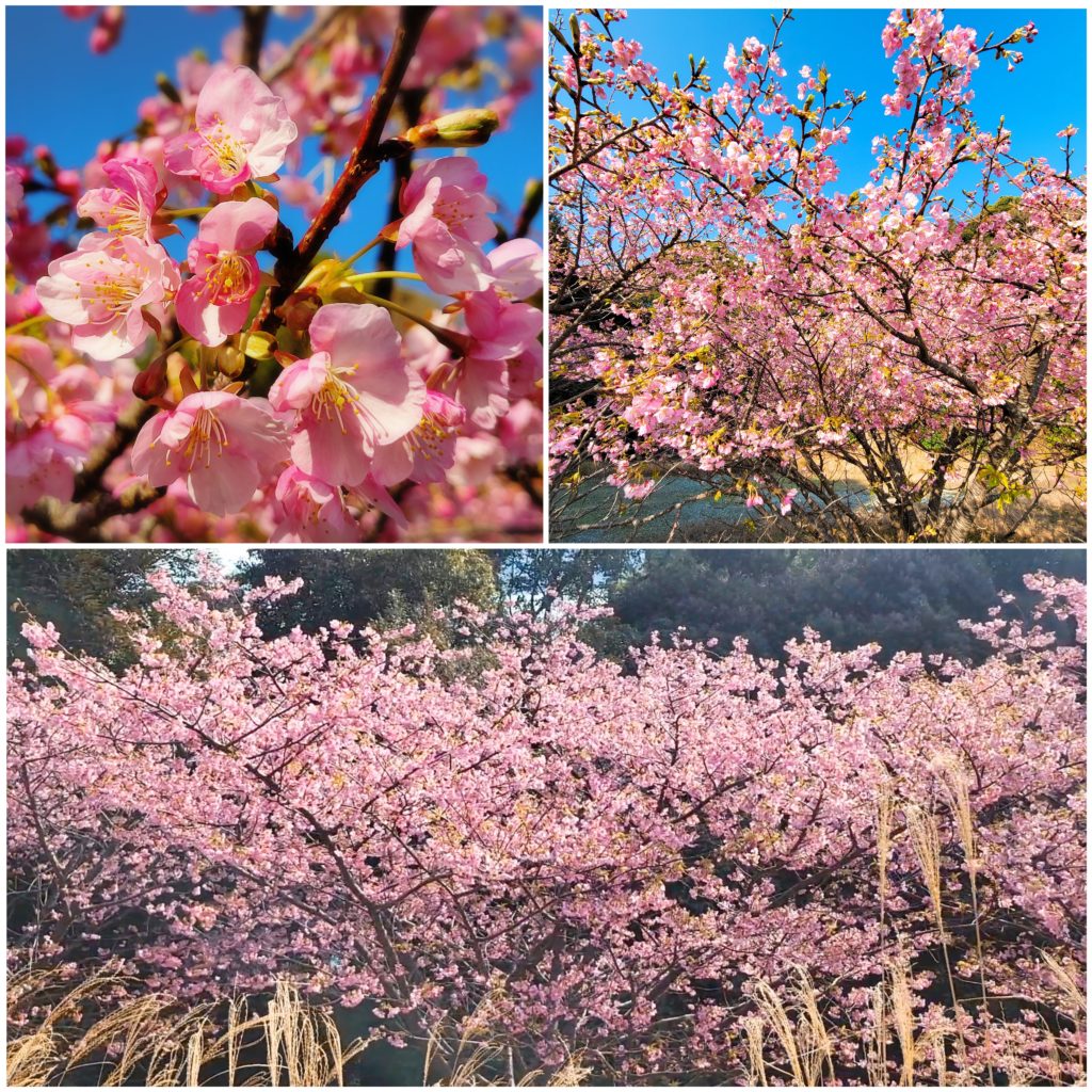 道中にある河津桜か見頃で今週末にも満開になりそうです🌸