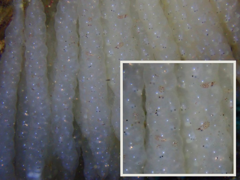 2月の風物詩ヤリイカの卵は岩影の奥に発見。お客様の写真で赤ちゃんの形になっているのを知りみんなで驚きました👀
