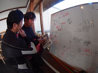 施設内にあるボードの水中マップを見ながらブリーフィングです。