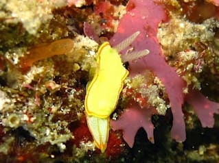 課題のウミウシ。レモン色がきれいです。