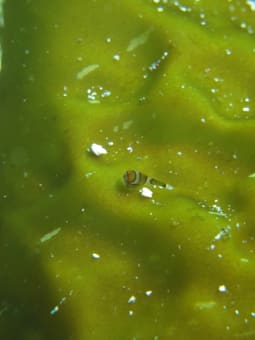 しかしゆらゆら揺れる海藻の上にいるダンゴウオをじっくり撮影するのは