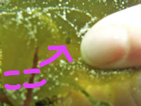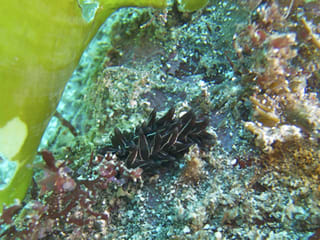 こちらは海藻の下にいたヒメクロモウミウシ